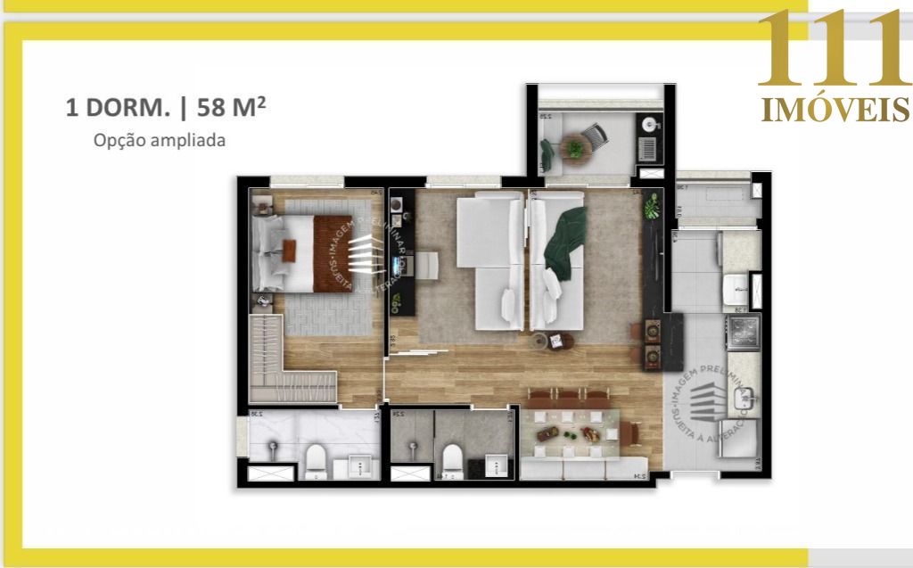 Temos também opção de apartamentos com 01 dormitório.