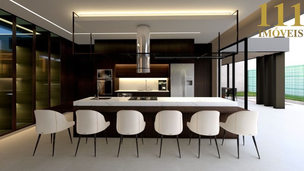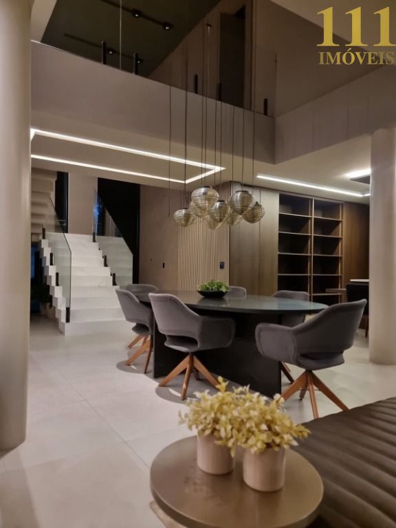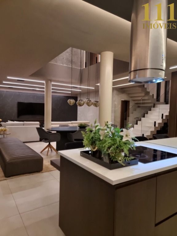 Esta luxuosa residência é um verdadeiro ícone de sofisticação, com projeto arquitetônico assinado pelo renomado arquiteto Marco Serrão. Com quatro suítes, sendo uma master com sala de banho exclusiva, a casa oferece amplo conforto e privacidade. A área social conta com uma sala de estar integrada à sala de jantar com pé direito duplo, criando um ambiente sofisticado e arejado, além de uma cozinha gourmet com copa e despensa.