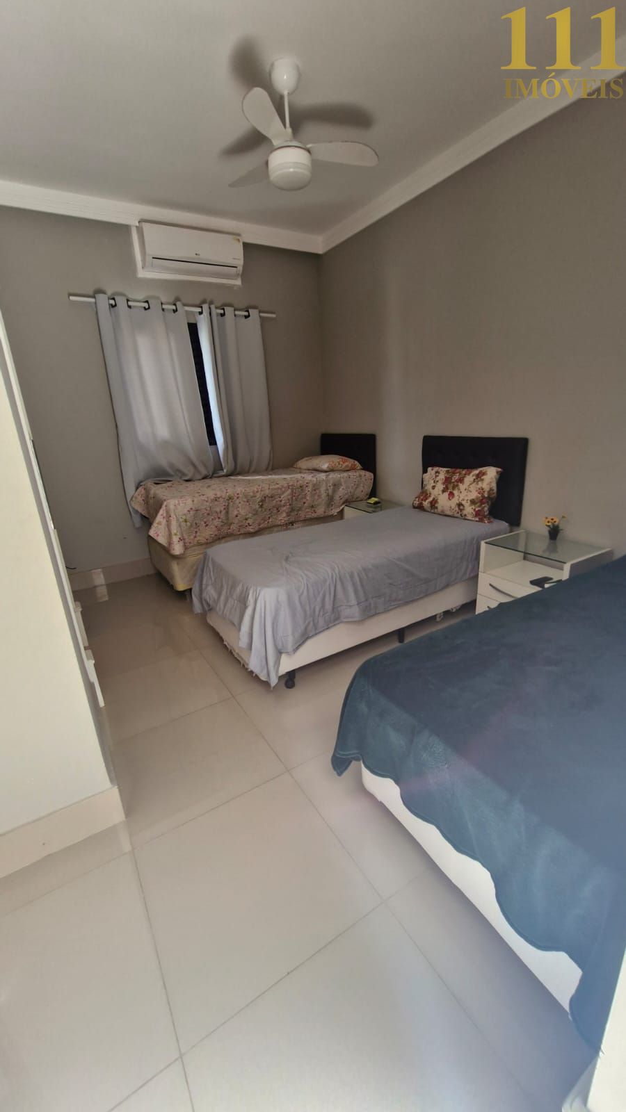 5 suítes, sendo 4 no piso superior repleto de armários, ar condicionado em todos os quartos, piso Porcelanato, ventilador de teto.