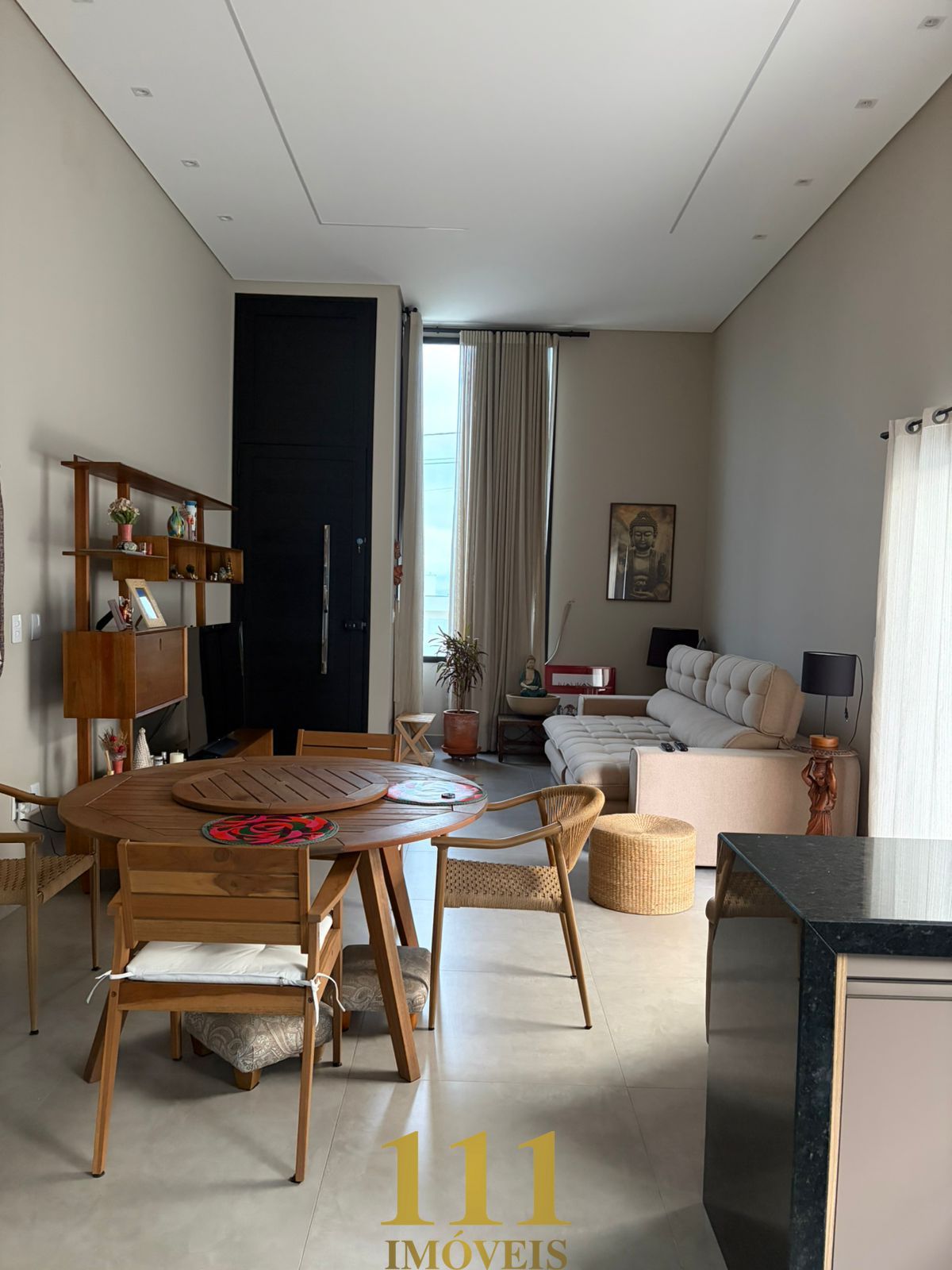• Living com pé direito duplo, proporcionando imponência, iluminação natural abundante e sensação de amplitude