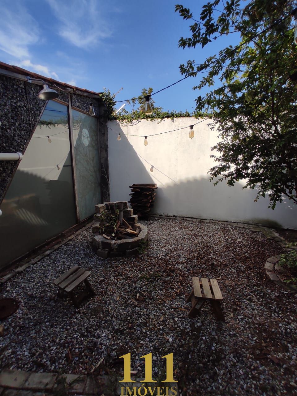Espaço para fogueira (20 m²), com iluminação retrô — perfeito para dias frios e momentos especiais
