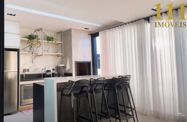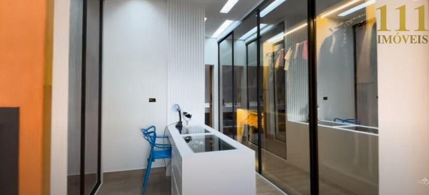 A cozinha é ampla e integrada, com uma sala de jantar sofisticada e uma sala de TV que pode ser facilmente transformada em um dormitório com suíte. A área gourmet, com fechamento em vidro e pergolado, é ideal para momentos de lazer, complementada por uma piscina aquecida. O espaço ateliê, que pode ser convertido em quarto, oferece versatilidade.