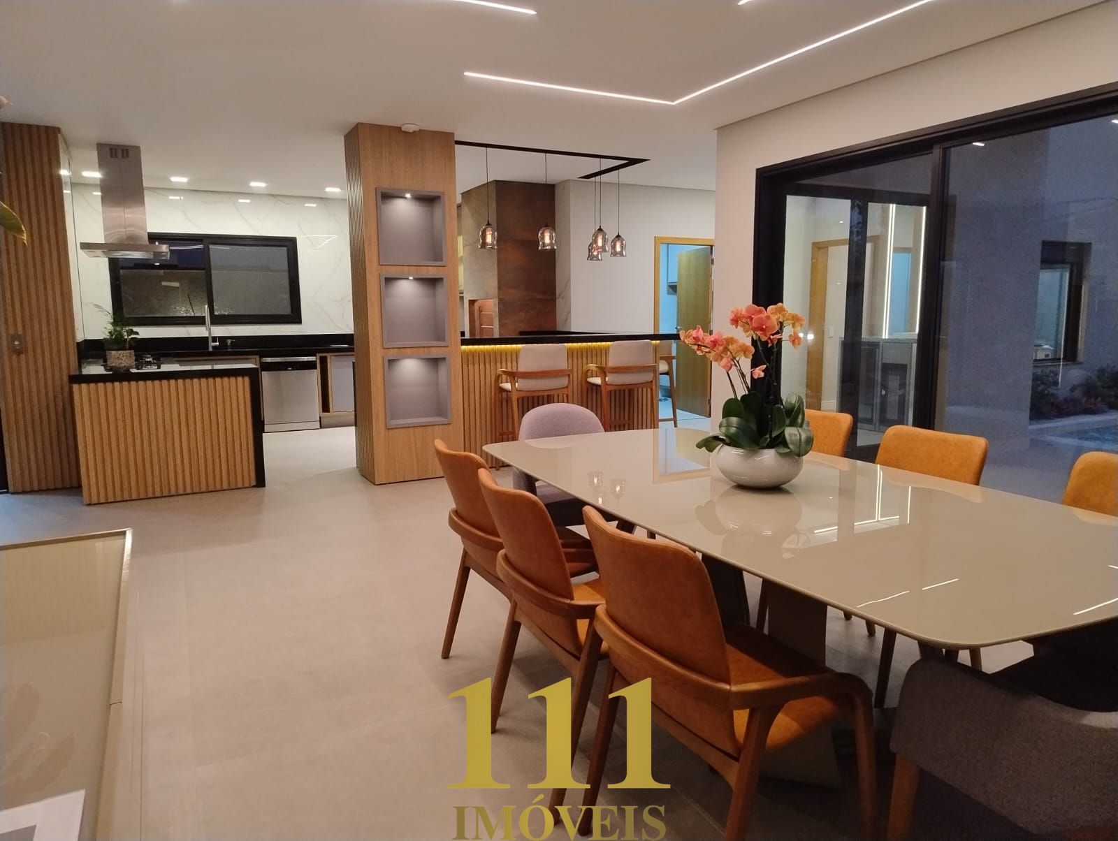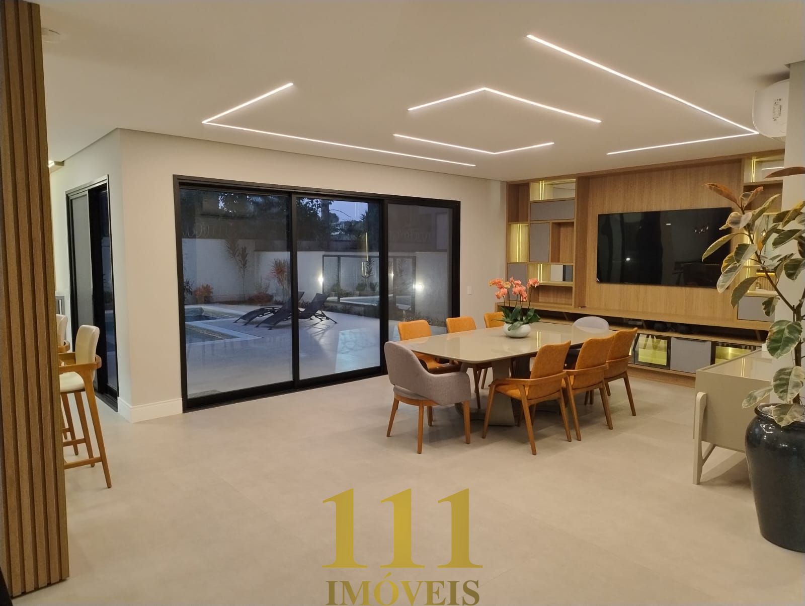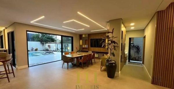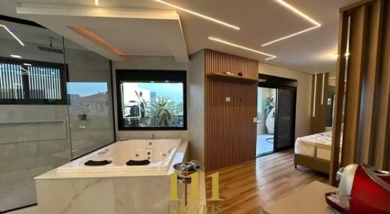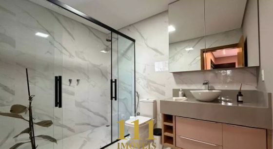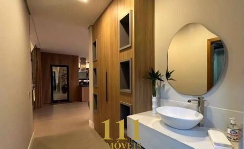 Esta residência nova de alto padrão, projetada para oferecer conforto e praticidade, conta com ambientes amplos e sofisticados. O térreo possui uma suíte, sala de estar e TV, lavabo, cozinha integrada com móveis planejados, lavanderia, e um banheiro com chuveiro para atender o espaço gourmet e a piscina. O espaço gourmet é perfeito para receber, com todos os eletrodomésticos modernos, incluindo cooktop, coifa, geladeira, lava-louças, cervejeira, adega e micro-ondas. A área externa oferece uma piscina com trocadores de calor, spa, ducha externa e um jardim bem cuidado, além de ser totalmente acessível para cadeirantes, com um elevador que conecta todos os andares.