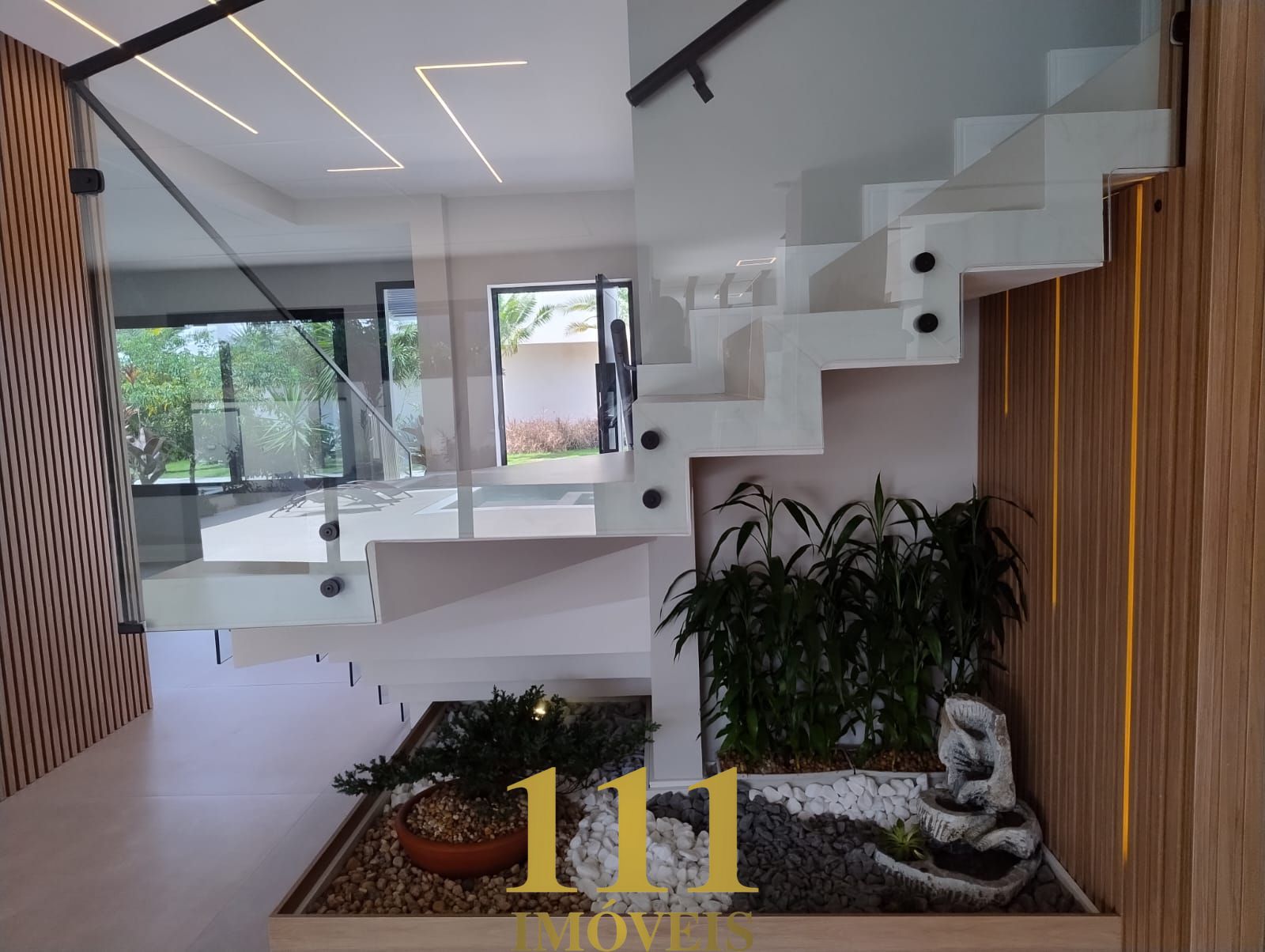 A casa é equipada com automação através do sistema Alexa, energia fotovoltaica e cisterna de 5.000 litros com tratamento para água de 2.000 litros, abastecendo os vasos sanitários, quintal e jardim. O aquecimento solar garante conforto térmico nos banheiros. A residência já vem com móveis planejados, cama box, colchão, TV na sala e no gourmet, frigobar, oito aparelhos de ar-condicionado e todos os eletrodomésticos essenciais, oferecendo o máximo de conveniência e sofisticação.