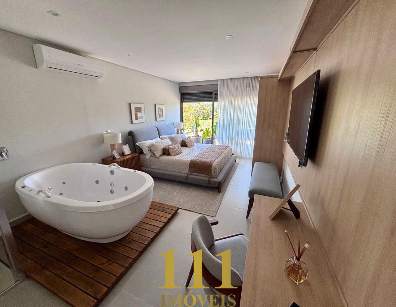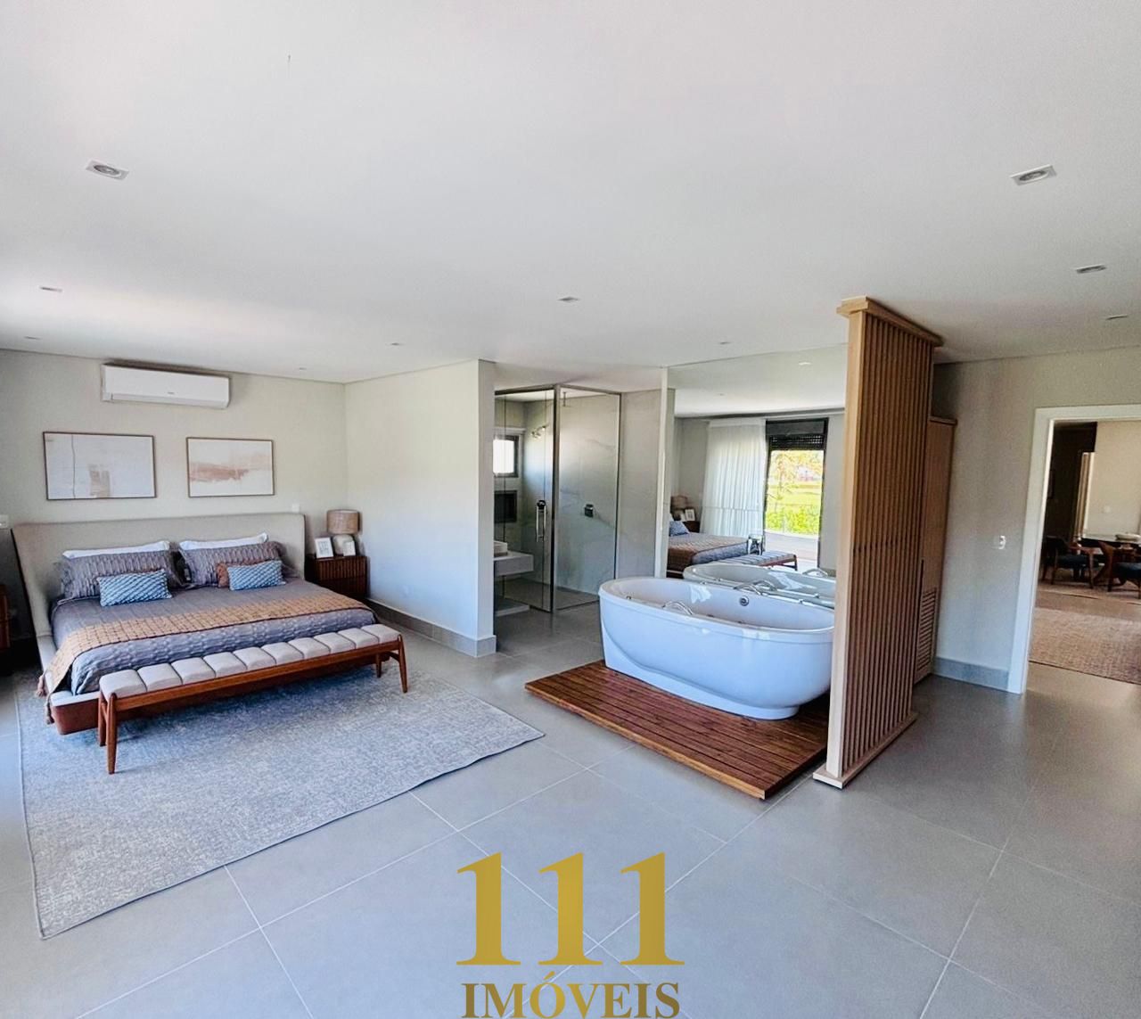 Destaque para a sala privativa de home theater, o espaço gourmet completo integrado aos ambientes sociais, e a cozinha planejada com equipamentos modernos. A área externa é um espetáculo à parte, com piscina com deck molhado, jacuzzi, espaço preparado para sauna, além de lareira, lavabo, ar-condicionado em todos os ambientes, área de serviço, e banheiro de empregada.