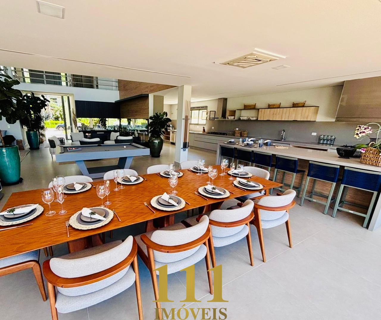 As salas sociais são amplas, com pé-direito duplo e totalmente integradas entre si, proporcionando amplitude e fluidez aos ambientes. A decoração é assinada e conta com mobiliário e equipamentos de altíssimo padrão, todos novos, pensados para oferecer o máximo em conforto e elegância.