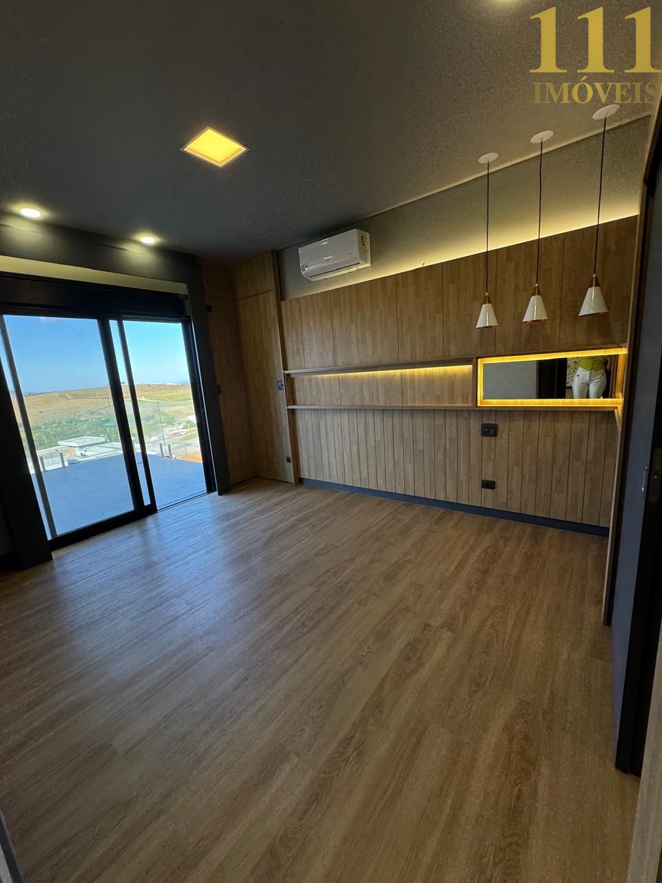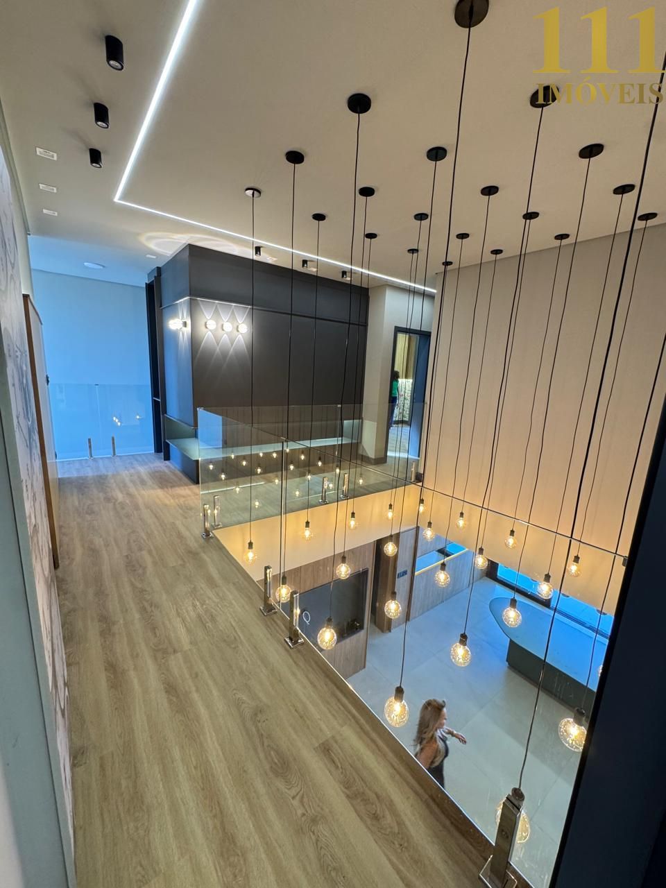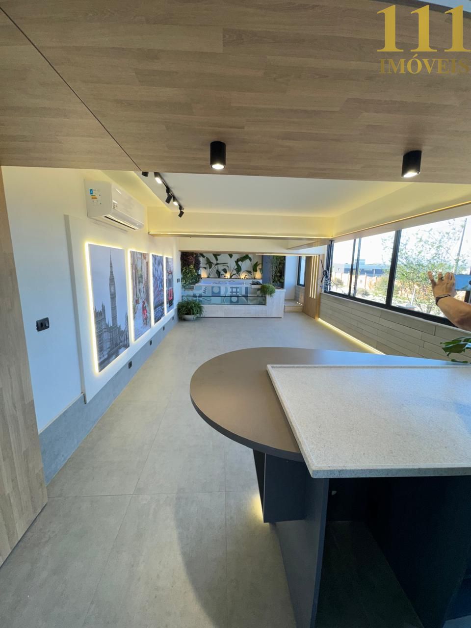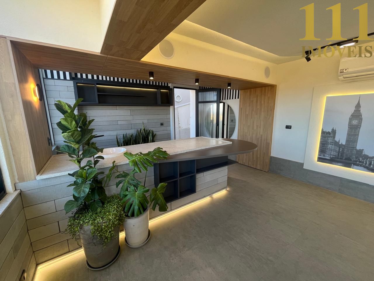 A iluminação ambiente valoriza os detalhes da decoração contemporânea, repleta de personalidade, criando uma atmosfera elegante e acolhedora.
