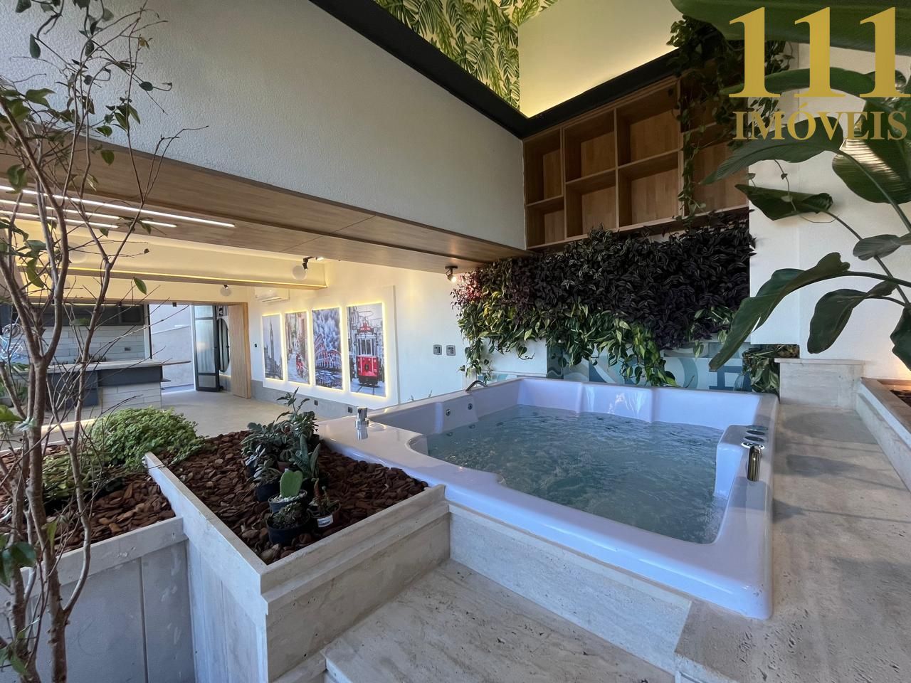 Outro espaço muito encantador e reservado com hidromassagem e bar ideal para relaxar.