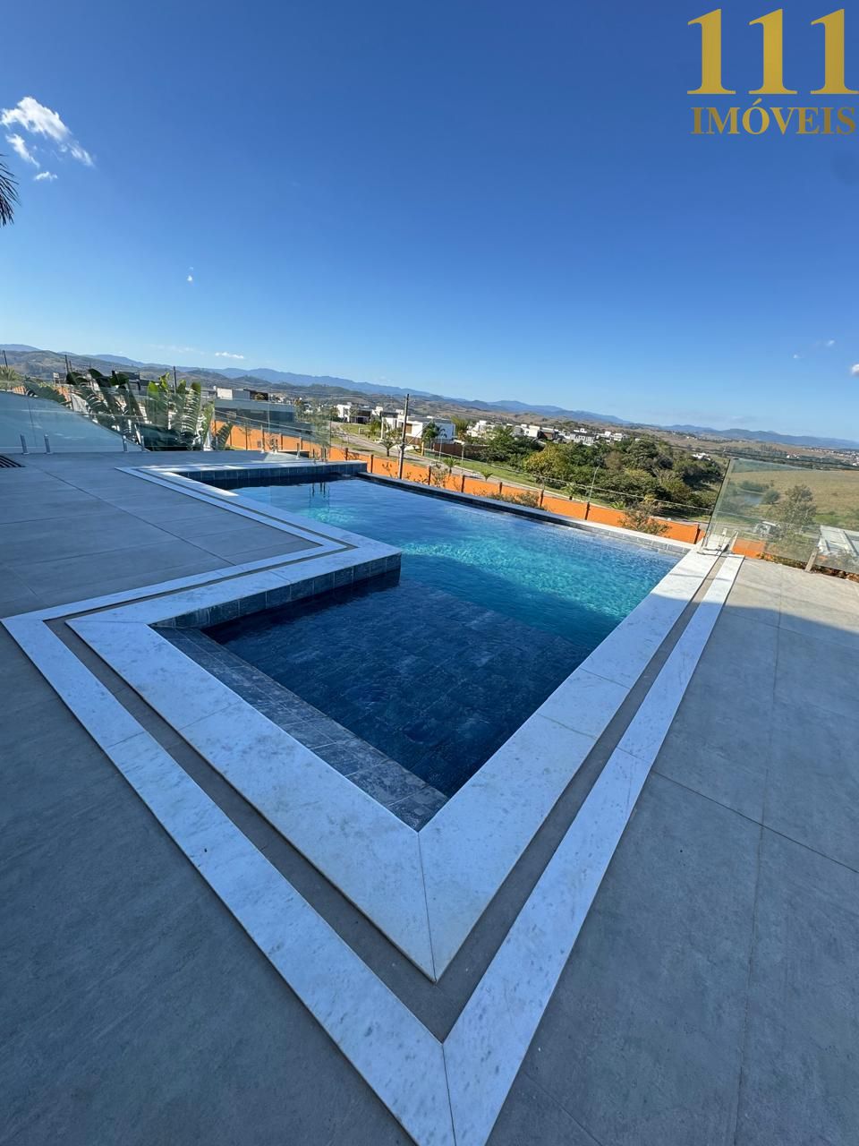 Piscina com borda infinita e vista livre, proporcionam um ambiente perfeito para um fim de tarde.