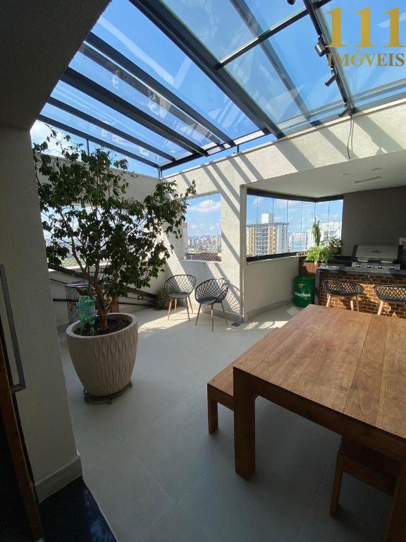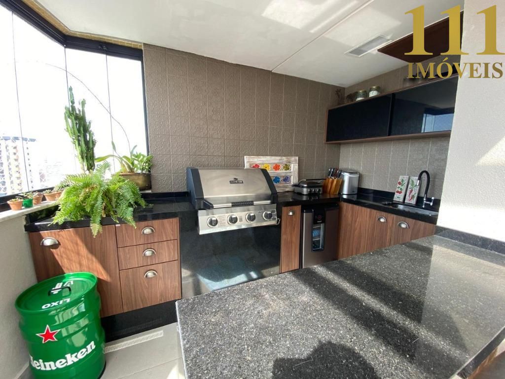 Cobertura de luxo com três quartos, todos climatizados, sendo uma suíte máster com closet e acabamentos impecáveis. A sala de estar, integrada à cozinha americana, cria um ambiente amplo e funcional para o dia a dia. A área gourmet é perfeita para receber convidados, enquanto a sala íntima, com ar condicionado, oferece um espaço reservado e confortável.