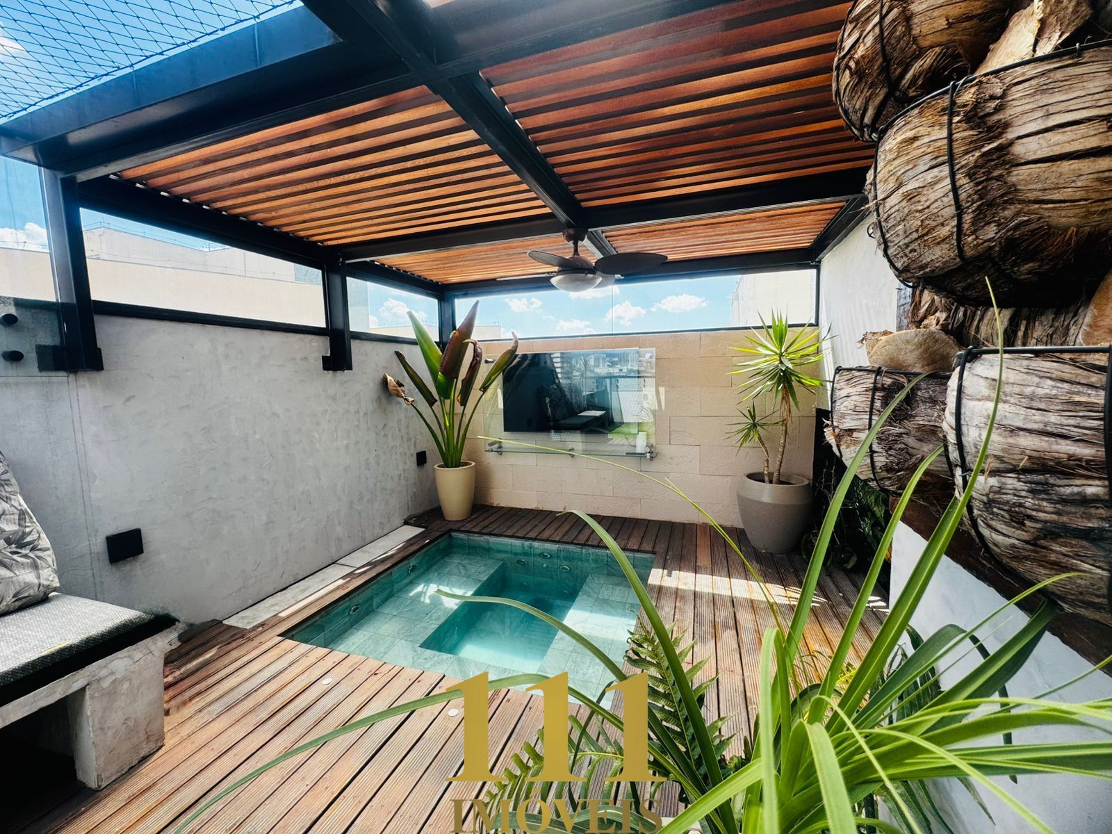 • Espaço externo com deck e jardim