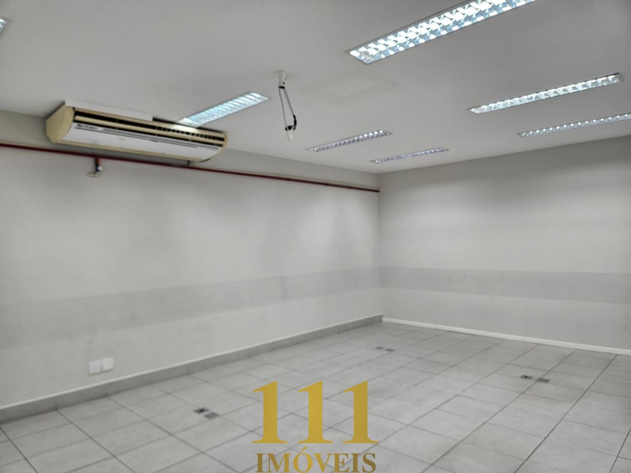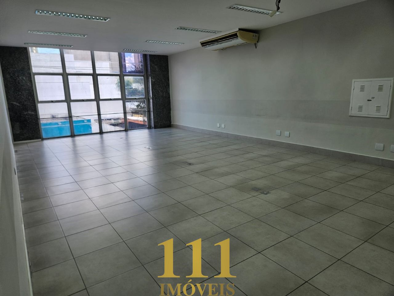 Sala comercial no primeiro andar, com amplo espaço e acabamento em porcelanato de alta qualidade. O imóvel conta com ar condicionado, banheiros masculino e feminino, ambos com quatro box, além de um banheiro PNE para acessibilidade. Dispõe também de uma copa para maior comodidade. O prédio possui elevador e seis vagas de garagem no subsolo.