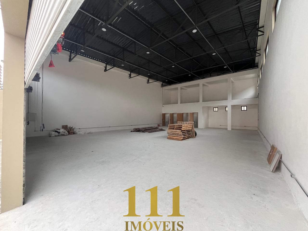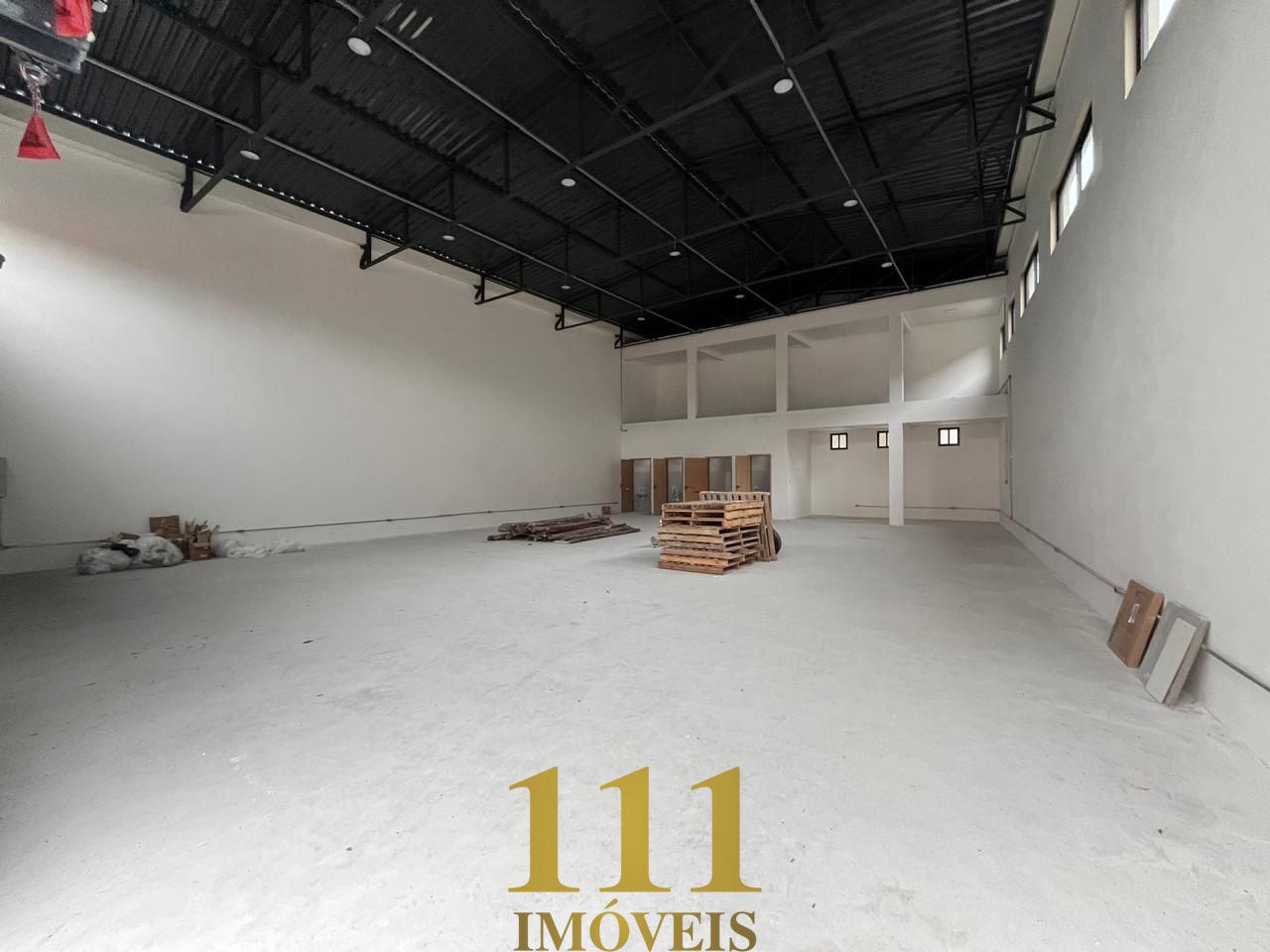 - 1° galpão: espaço aberto de 280m² com pé direito duplo (espaço suficiente p colocar um mezanino), 4 banheiros, 08 vagas na frente do prédio.
