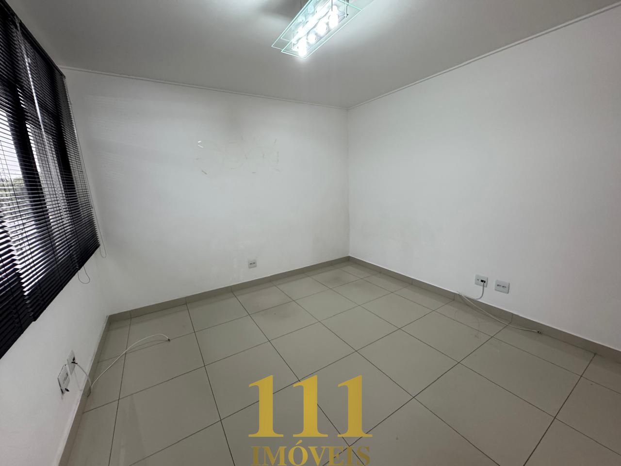 O ambiente possui piso em porcelanato, garantindo um acabamento moderno e de fácil manutenção, e está equipado com ar-condicionado para o conforto dos usuários. As janelas são providas de persianas, oferecendo controle de luz e privacidade.