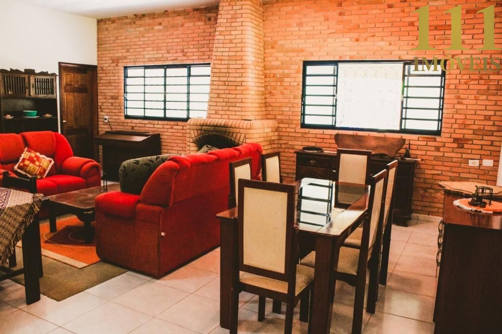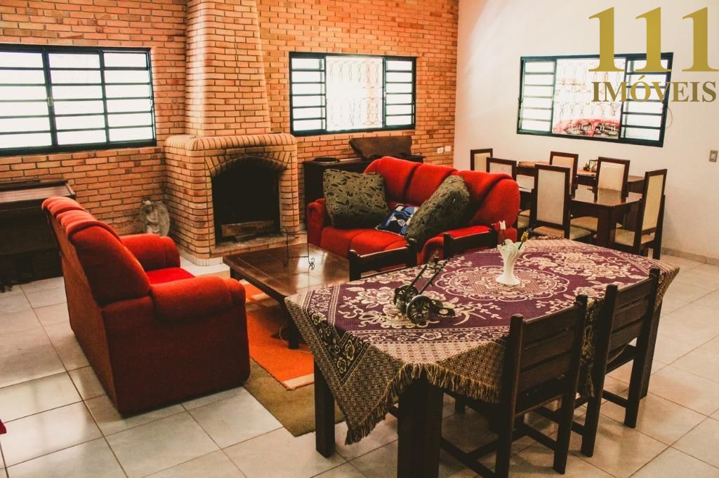 Podendo ser pousada ou sítio familiar com sete dormitórios amplos, sendo sete suítes, oito banheiros, lareira, duas salas amplas e duas cozinhas planejadas. Casa avarandada com holofote e tijolo a vista. Casa do caseiro com entrada independente, dois dormitórios e banheiro com box. Conta também com trinta e cinco vagas de garagem, sendo quatro cobertas!